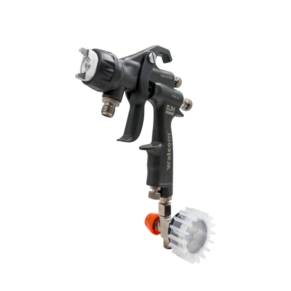 For over a decade SLIM has been synonymous with quality, reliability and versatility, appreciated all over the world of painting: from Car Refinish to Industry, to Woodworking. Today we introduce the Slim KOMBAT, a new, unique and revolutionary version of the spray gun that has made the history of Walcom®. Slim KOMBAT is incredibly light 380g , it breaks the rules, abandons the classic aluminum body and presents itself with an innovative magnesium body, injected with Kevlar® fiber (PAT. PENDING) Slim KOMBAT is available in 3 versions: HVLP, HALO, HALO SR, which share the same air consumption (220-260 l/min), high...n), high...