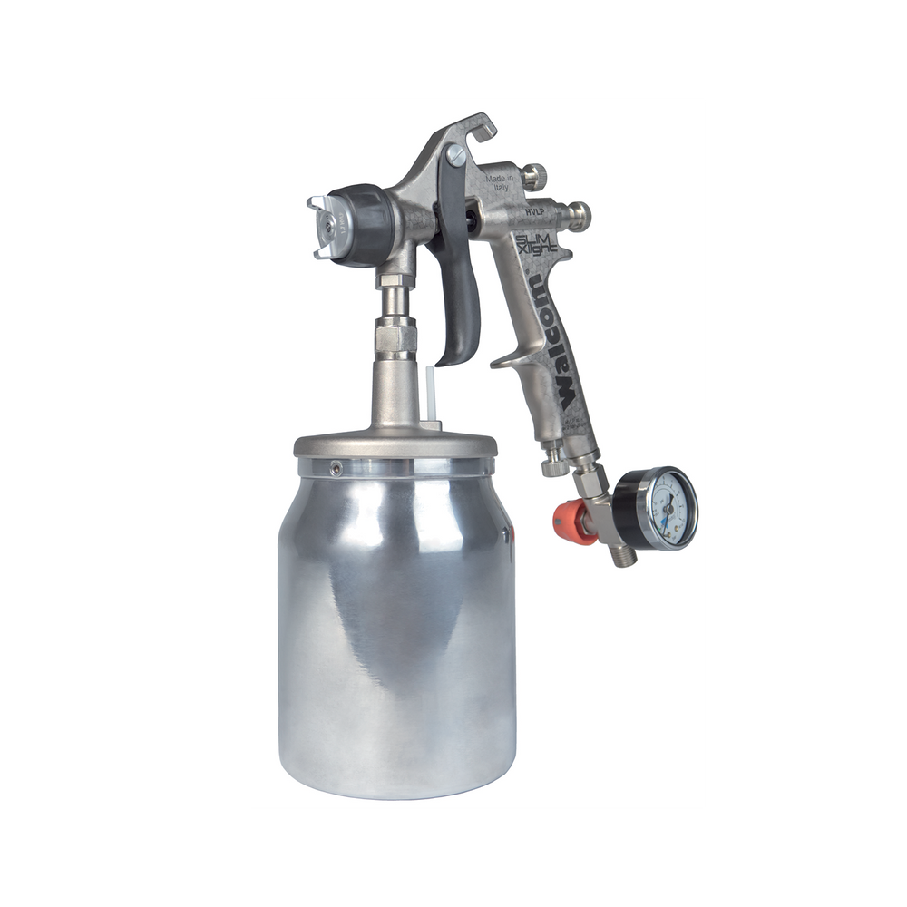 The spray gun is constructed with an air valve and needle on a single axis to provide higher performance and greater maintenance simplicity.